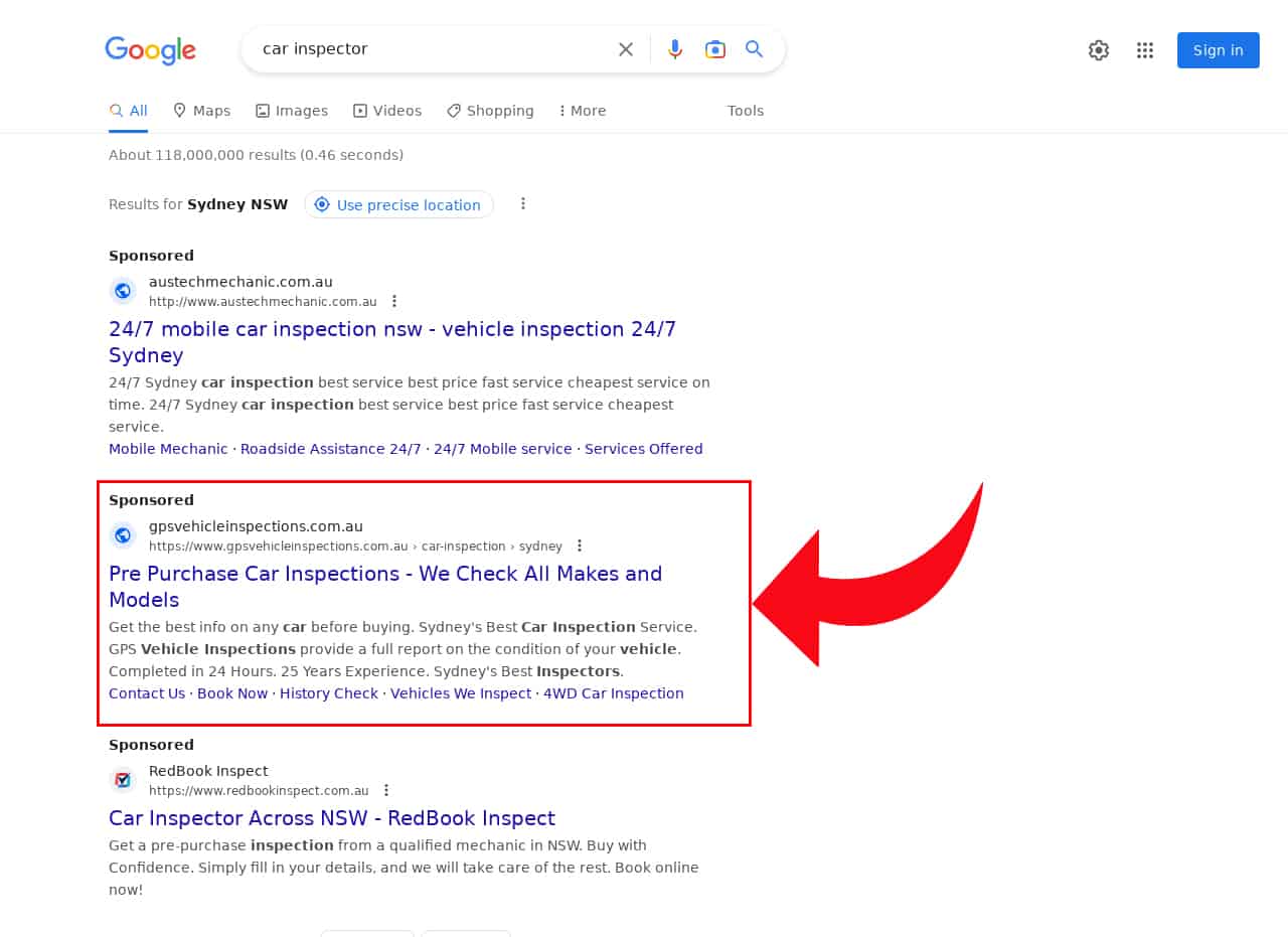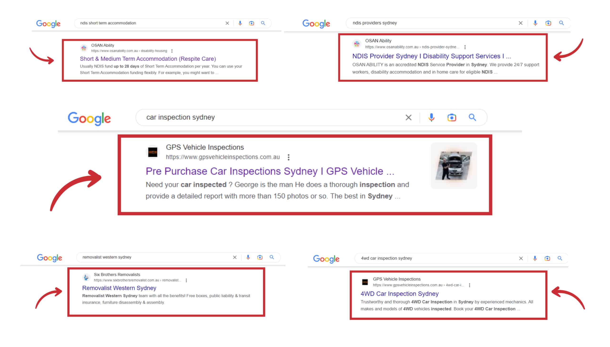 Through a comprehensive SEO strategy that includes on-page optimisation, quality content creation, and off-page link building, our team has been able to improve the visibility and authority of GPS Vehicle Inspections website. As a result, the business has been able to attract hundreds of customers through organic search, establishing itself as a leading provider of used car inspections service completely mobile in Sydney.