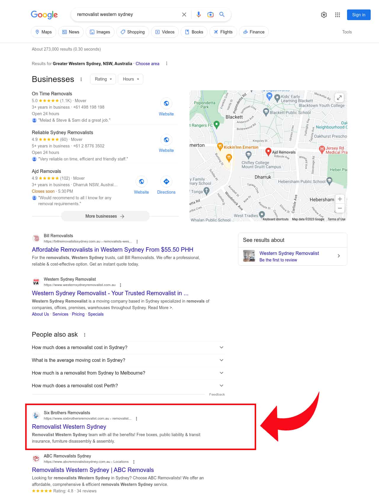 Our success in helping our client grow and succeed is a testament to our expertise and ability to provide effective digital marketing solutions. Below are some of the keywords Six Brothers Removalists ranks for in the SERP.